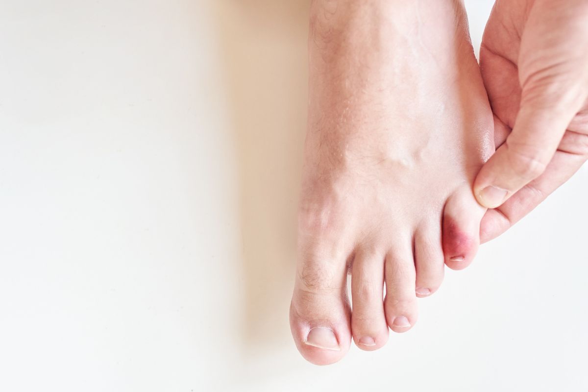 A dor é o sinal mais evidente e costuma ser pulsante após longos períodos com sapato fechado. Você pode notar que a região fica quente e inchada ao final do dia. Em casos mais avançados, o simples toque do lençol pode incomodar.